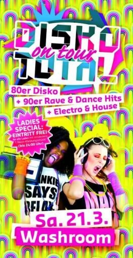 Dresden schreit nach mehr DISKO TOTAL! Um dieser Forderung nachzukommen, wird es die einzig wahre 90er Party der Stadt künftig einmal im Monat geben. Damit´s aber für alle Party-Süchtigen nicht langweilig wird, hat man sich gleich zu Anfang des Turnus` was ganz verrücktes ausgedacht, nämlich einen Feier-Ausflug in den benachbarten Washroom. Dort wird also nun am 21. März das erste Mal eine DISKO TOTAL außerhalb des Fahrenheit 100 stattfinden. Auf vieles andere ist allerdings wieder Verlass, wie z.B. auf die Residents DiskoCheff und H-Ky die auch im Washroom die coolsten 80ies Disko Tracks sowie erlesene Perlen aus den 90ern auf die Teller packen werden. Im Golden Room ist diesmal Bass Ventura für feinsten Electro und NuRave Sound zuständig und wird der elektronischen Fraktion entsprechend Beine machen.