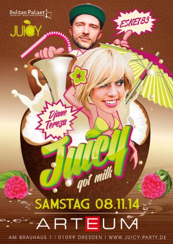 Die beliebteste Urban Partyreihe Sachsens - JUICY - ist im Oktober mit einer Wahnsinns-Party standesgemäß in seiner Winterresidenz Arteum angekommen. Fortsetzung folgt direkt, denn am 8. November gibt es geballte Dresden-Power mit den JUICY-Homies. Der Red Bull Thre3Style World Champion 2014 ESKEI83 wird gemeinsam mit seinem Kumpel D3!C für die freshesten Sounds auf den Plattentellern sorgen!