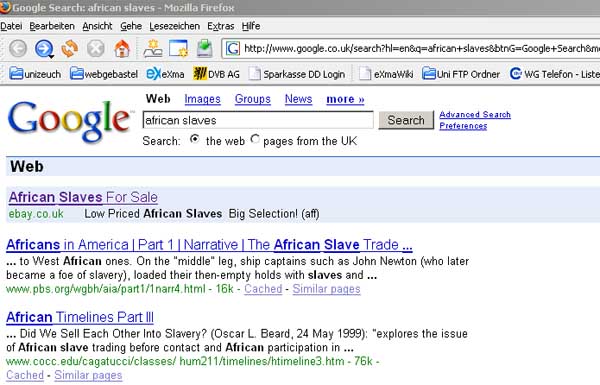 da gabs in der ersten zeile african slaves "low priced" bei ebay..