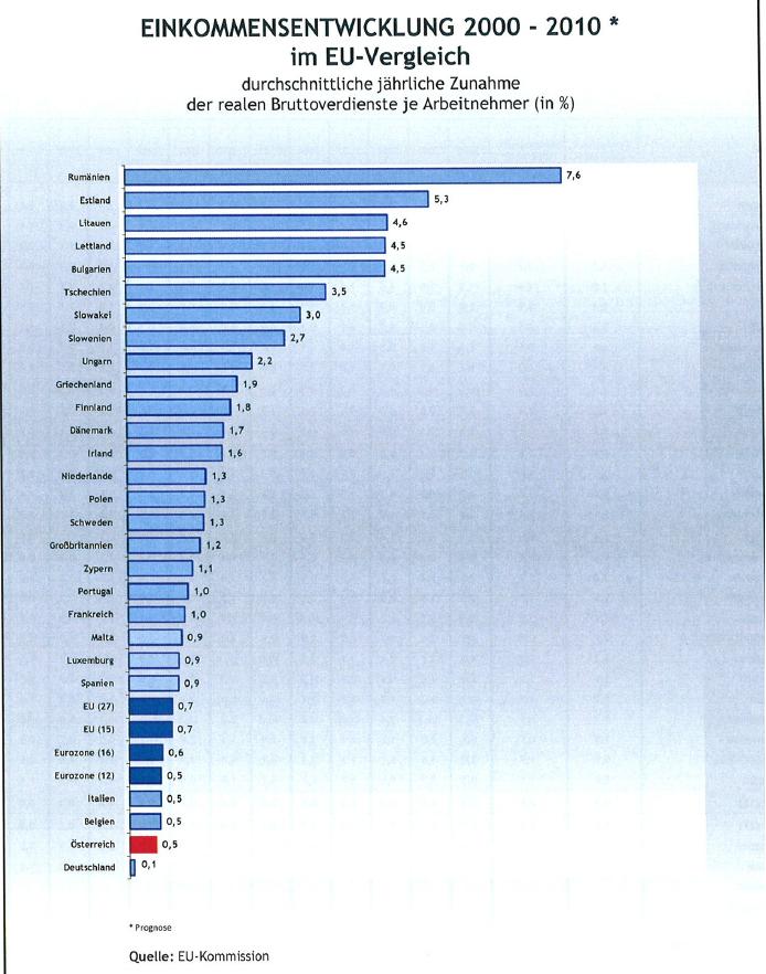 Realeinkommensentwicklung innerhalb EU