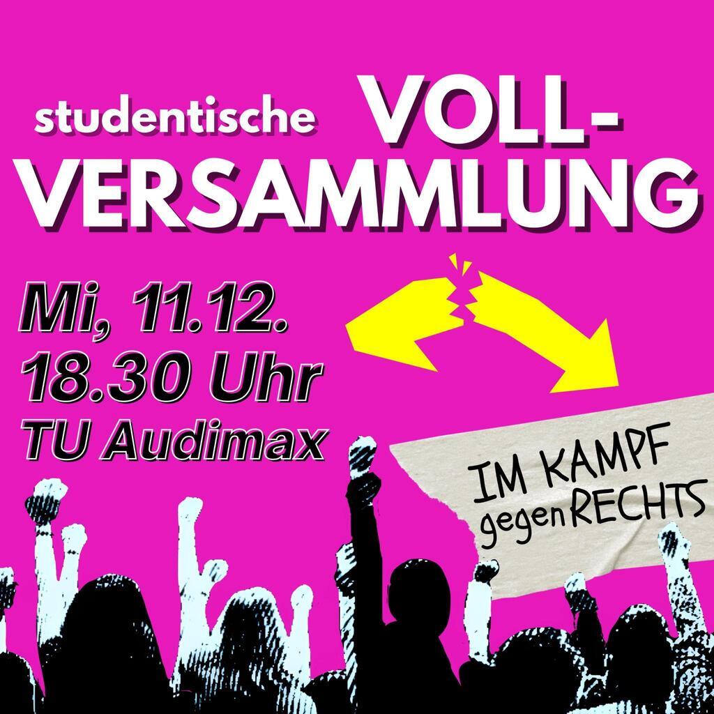 💥 Deswegen rufen wir eine Vollversammlung gegen Rechts aus. Am Mittwoch, den 11.12. um 18:30 im HSZ/Audimax der TU Dresden!
