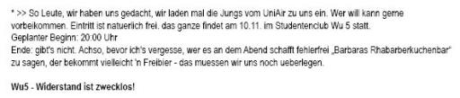 Studentenclub Wu5 am Sonntag den 10.11.2013